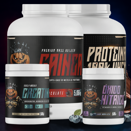 El stack más completo de Pump-King. Combinación de Proteína 100% Whey, Creatina, Pre-entreno y Gainer Mass para alcanzar tu objetivo calórico.